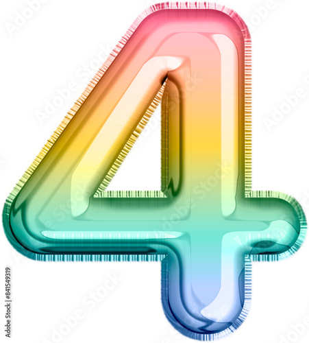 © kikinunchi, Obraz premium Rainbow Metallic Balloon Number 4