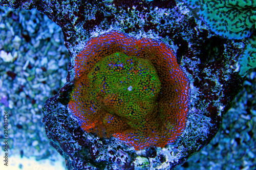 © Kolevski.V, Obraz premium Rainbow Montipora sp. krótkie polipy kamienne koralowce akwakultury w akwarium