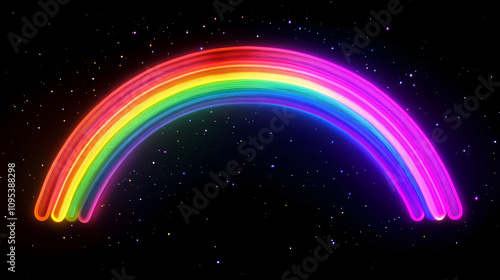© Thiago, Obraz premium Rainbow neon light, glowing rainbow arch in black background generative ai. Illuminated Rainbow Arch. Illustration