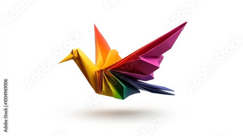 © KN Studio, Naklejka premium Rainbow Origami Bird in Flight