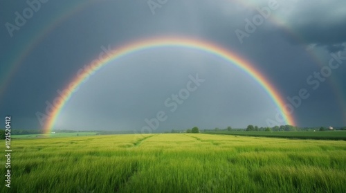 © Cloudy, Naklejka premium Rainbow over Meadow After Rain