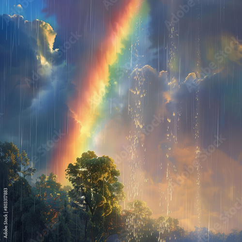 Naklejka premium rainbow over the forest
