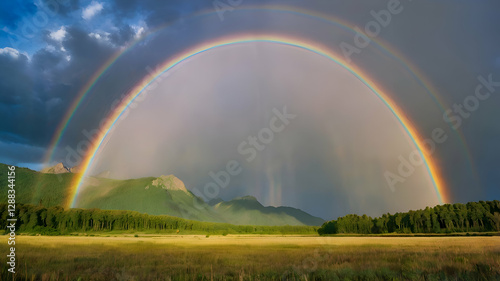 Obraz premium rainbow over the lake, rainbow over the field, rainbow over the river,...