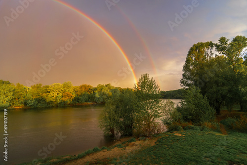 © Александр Арендарь, Obraz premium rainbow over the river and forest
