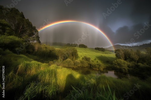 © Teo, Naklejka premium rainbow over the river made by midjourney