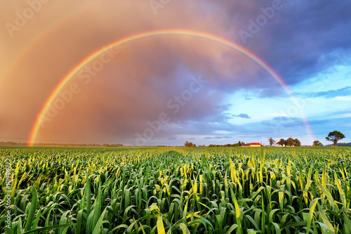 © TTstudio, Naklejka premium Rainbow over wheat field, nature landscape