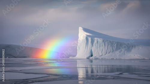 Obraz premium Rainbow Over White Iceberg in Arctic Ocean with Ice Floes