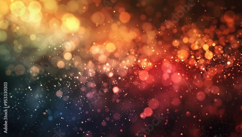 © FEEZAN ALI, Obraz premium rainbow particles bokeh background, red and black color theme
