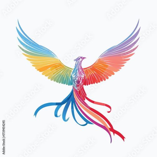 © BrianQuest, Obraz premium Rainbow Phoenix with Flowing Feathers – AI Generated