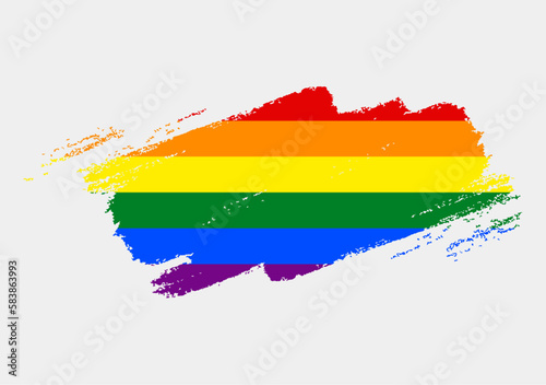 Obraz premium Rainbow Pride Flag painted with brush on white background. LGBT rights concept. Modern pride parades poster. Vector illustration