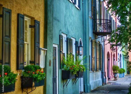 © Kyrsten, Obraz premium "Rainbow Row" Charleston, SC