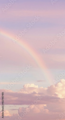Naklejka premium Rainbow's Embrace: Witness the ethereal beauty of a full rainbow arching across a pastel sky, a symbol of hope and serenity. Capture the essence of this stunning phenomenon.