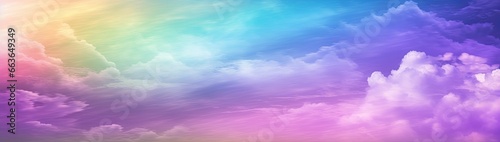 Obraz premium Rainbow sky with fluffy clouds. Multicolored toned sky.