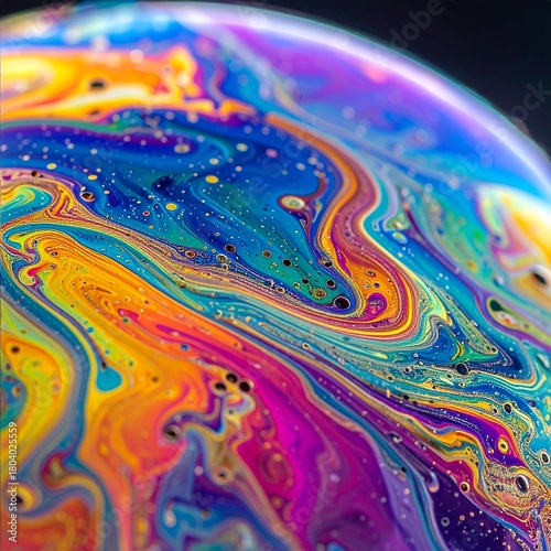 Naklejka premium rainbow soap bubble surface, macro photography, swirling colors