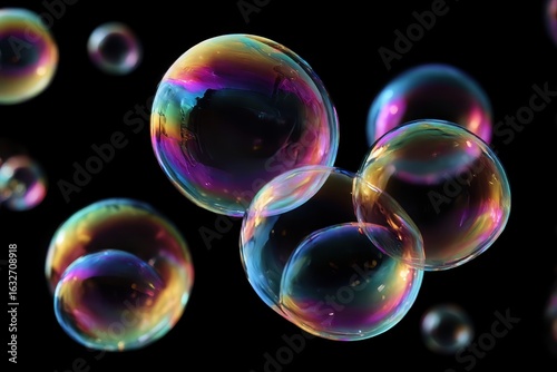 © Bojan, Naklejka premium Rainbow soap bubbles on black background.