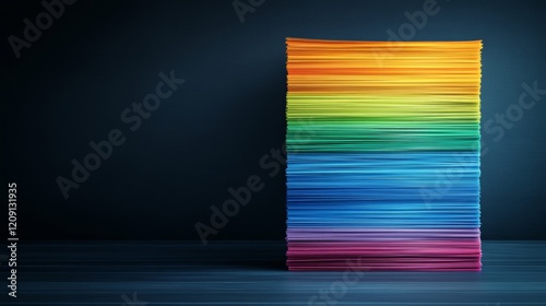 © Big9869, Naklejka premium Rainbow Stacked Papers on Dark Background