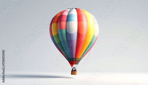 © Edge, Obraz premium Rainbow-striped hot air balloon against light gray backdrop