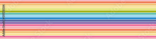 Obraz premium Rainbow stripes background banner vector. Fun colourful horizontal striped seamless pattern border .