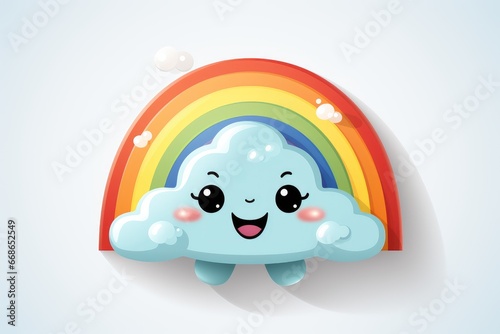 © Alesia, Fototapeta premium Rainbow, sun and clouds in cartoon style on a white background. Children's card, banner