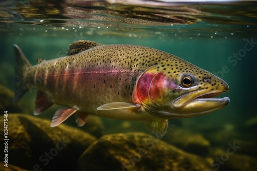 Fototapeta premium Rainbow trout swimming under crystal‑clear water