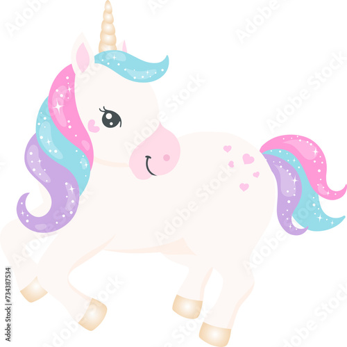 © MyClipArtStore.com, Fototapeta premium Rainbow Unicorn, Cute Pony, White horse