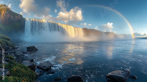 © Sugoi, Fototapeta premium Rainbow waterfall scenic landscape