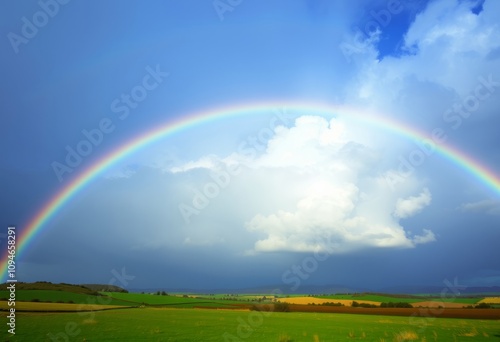 © Katya, Naklejka premium Rainbow with Holographic Clouds Rainbow arching over a landscape