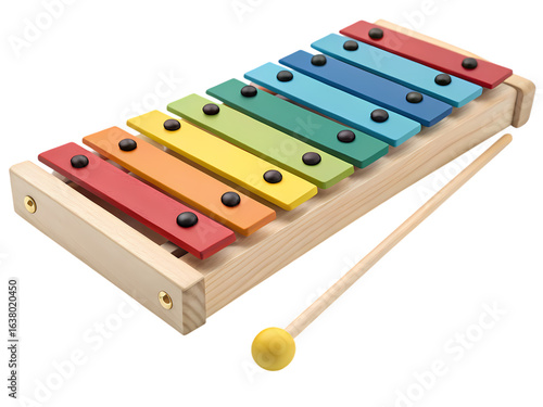 © Ahsaan, Fototapeta premium Rainbow Xylophone and Mallet on transparent background
