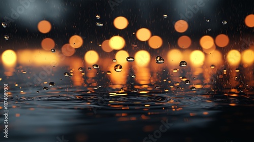 Obraz premium Raindrops and Reflections in Warm Bokeh Light