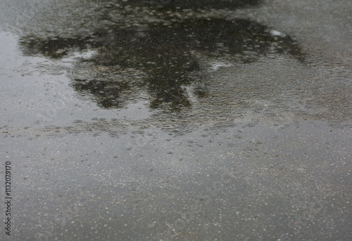 Obraz premium Raindrops falling on the ground, close-up