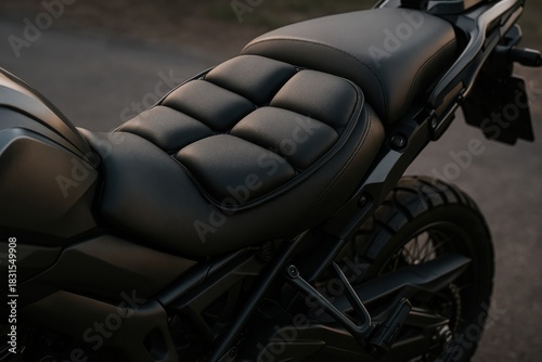 © Rosi, Fototapeta premium Raindrops glisten on the comfortable padded seat of a modern motorcycle