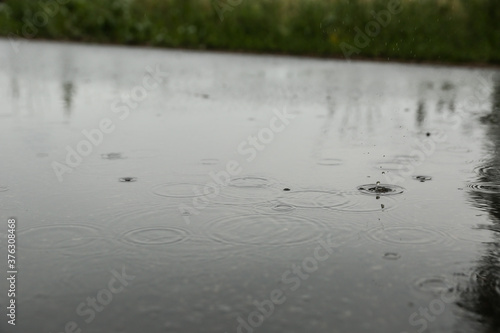 © Petr Smagin, Fototapeta premium raindrops in a puddle outdoor at summer