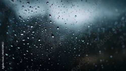 © Thares2020, Obraz premium Raindrops on a window glass with soft backlight