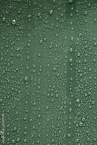 Fototapeta premium Raindrops on dark green metal surface