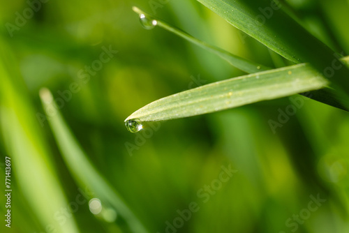© josevgluis, Obraz premium raindrops on fresh green leaves on a black background. Macro shot of water droplets on leaves.