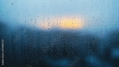 © afridwi, Obraz premium Raindrops on glass sunset background moody texture