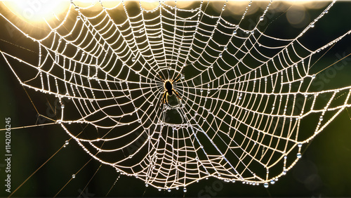 © Nishan, Obraz premium Raindrops on Spider Web: Capturing the Beauty of Nature's Delicate Connections