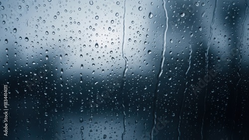 © SHALENA, Obraz premium Raindrops on the window. Blue tone