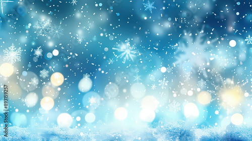 © Toppick789, Obraz premium Raindrops on window with winter night sky and snowflakes