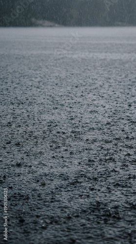 © artem, Obraz premium Rainfall on lake surface creating ripples and reflections