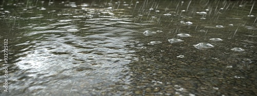 © Arti, Obraz premium Rainfall over lake, ripples on water surface, gray overcast sky