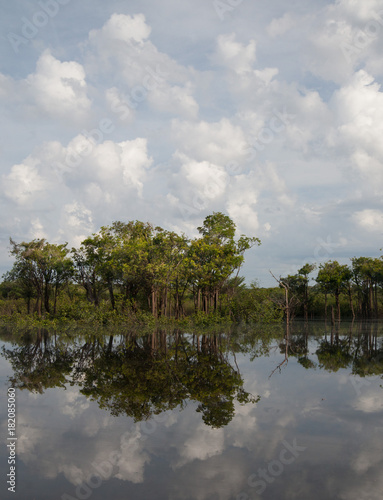 Obraz premium Rainforest and clouds reflected in Rio Negro, Amazon