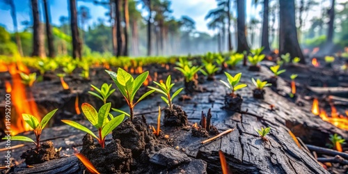 © Adisorn, Obraz premium Rainforest Deforestation Macro Photography: Slash and Burn Agriculture Close-Up