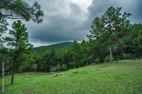 Obraz premium Rainforest in boscage with rain clouds perspective
