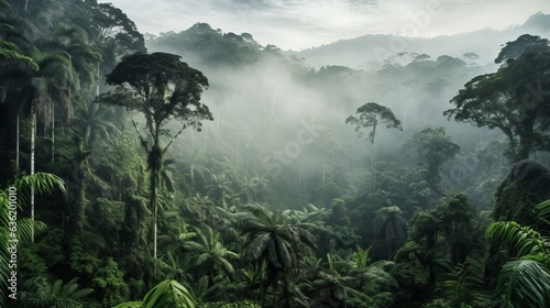 Fototapeta premium Rainforest Landscape With Trees And Fog