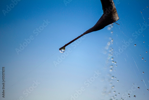 Obraz premium Rainwater drops on spiderweb