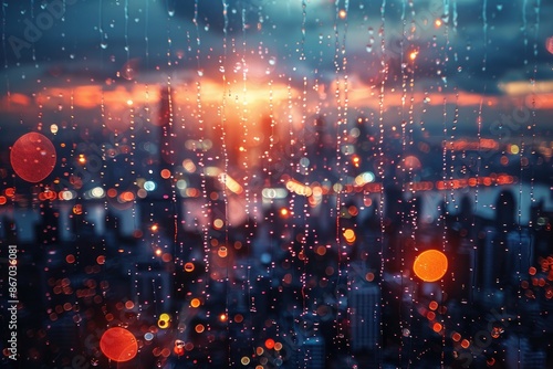 Obraz premium Rainy City Lights Through Window