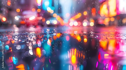 © AgungRikhi, Fototapeta premium Rainy City Night with Lights Reflection