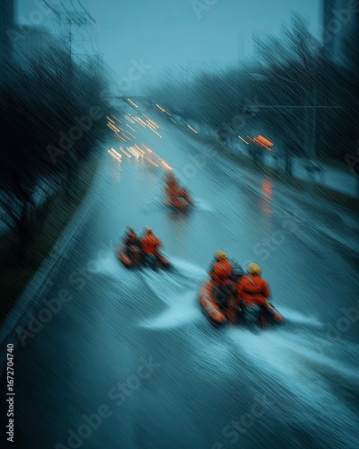 © Allan, Obraz premium Rainy City Street Flood Rescue Operation