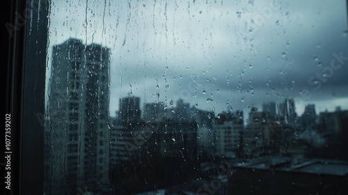 Fototapeta premium Rainy Day Cityscape Through Window